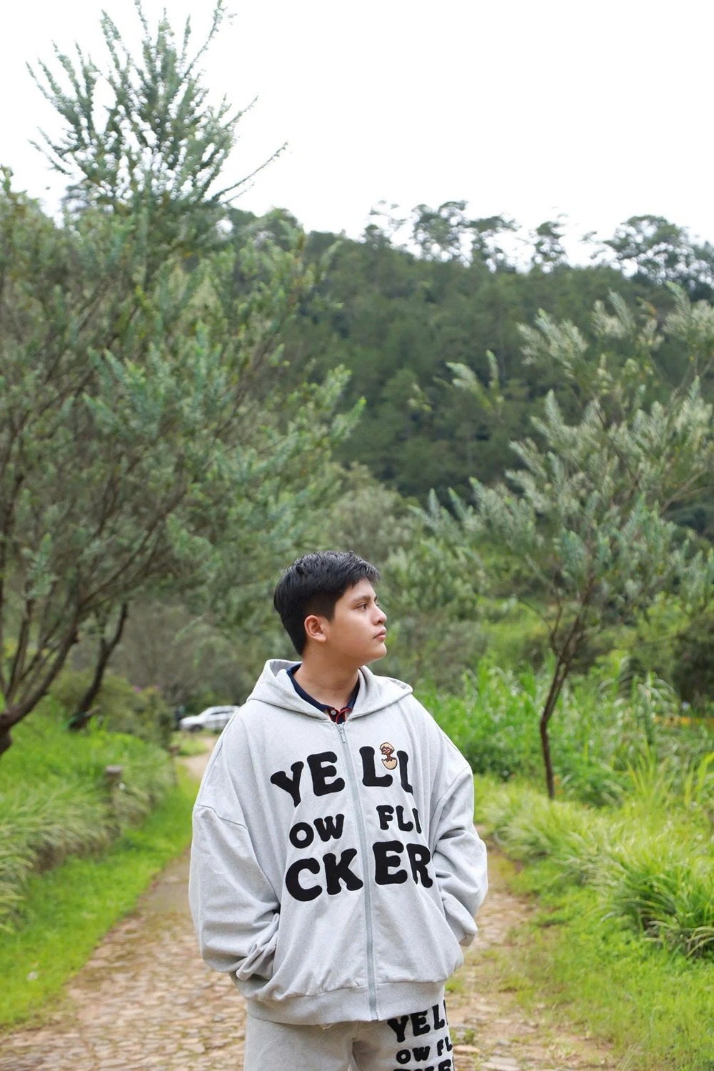 “Đi chơi với ba mẹ, 7h15 đã lên giường ngủ vì ở đây yên tĩnh quá… sáng 6h30 lại dậy đi bộ ngắm hoa.”
